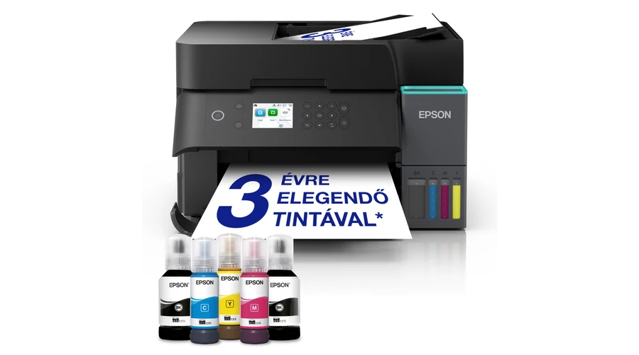 **Regisztráció esetén 3 éves kiterjesztett garancia elérhető 2026.03.31-ig! Az igényléseket a termék (végfelhasználói) vásárlásától számított 30 napon belül kell beküldeni! Regisztráció és részletek: https://www.epson.hu/hu_HU/promotions/extended-warranty *Multifunkciós: nyomtat, beolvas, másol *Nyomtatási sebesség ISO: 18 lap/perc mono, 9 lap/perc színes *Nyomtatási felbontás: 4.800 x 1.200 dpi *Tinták: No.101, black [Pigment] 127ml, cyan/magenta/yellow [DYE, VÍZBÁZISÚ] 70ml *Szkennelési sebesség DADF: Egyoldalas szkennelési sebesség 5 oldal/perc mono/színes, kétoldalas szkennelési sebesség 3,5 l/perc mono/színes *Szkennelés felbontása: 1.200 dpi x 2.400 dpi, formátumok: BMP, JPEG, PICT, TIFF, multi-TIFF, PDF, PNG *1db 250 lapos papírtálca + 30 lapos DADF; kiadó tálca: 30 lapos *Papírsúly: 64 g/m2 - 300 g/m2 * Automatikus kétoldalas nyomtatás (DUPLEX), szegély nélküli nyomtatás *Csatlakozók: USB, Ethernet, Wi-Fi, Wi-Fi Direct *Mobil és felhőalapú nyomtatási szolgáltatások: Apple AirPrint, Mopria, Epson Smart Panel App, Epson Connect (Email Print, Remote Print Driver), Epson Connect (Email Print, Scan-to-Cloud) *LCD kijelző: színes, 6,1cm átlójú *A doboz tartalma:1 szett tinta (1x127 ml BK, 3x70 ml CMY) + 1db extra fekete, Nyomtató meghajtó- és kiegészítő szoftverek (CD), Készülék, Tápkábel, Garancia dokumentum *A dobozban található palack(ok) kapacitása: fekete:kb.14.000 oldal, színes:kb.5.200 oldal *Garancia: 12 hónap vagy 100.000 oldal (bevivős/beküldős)